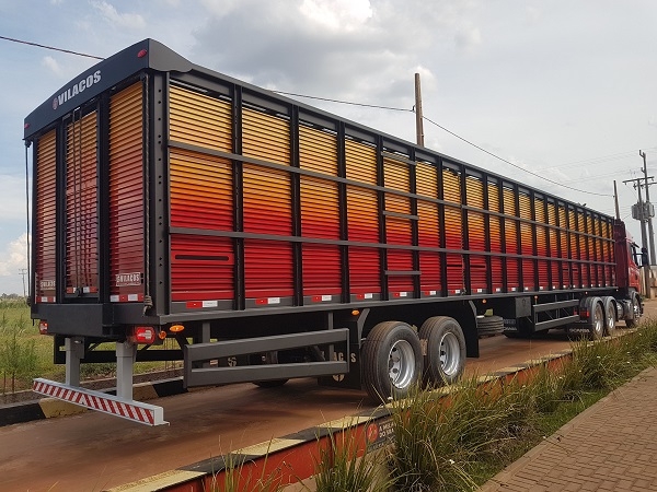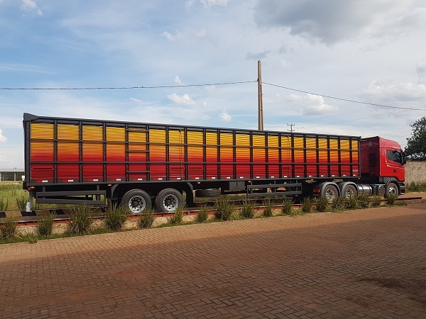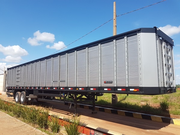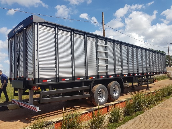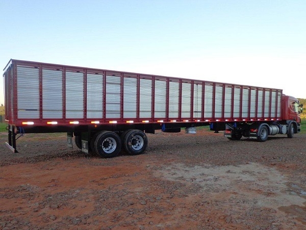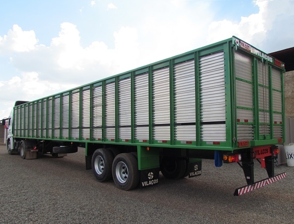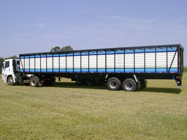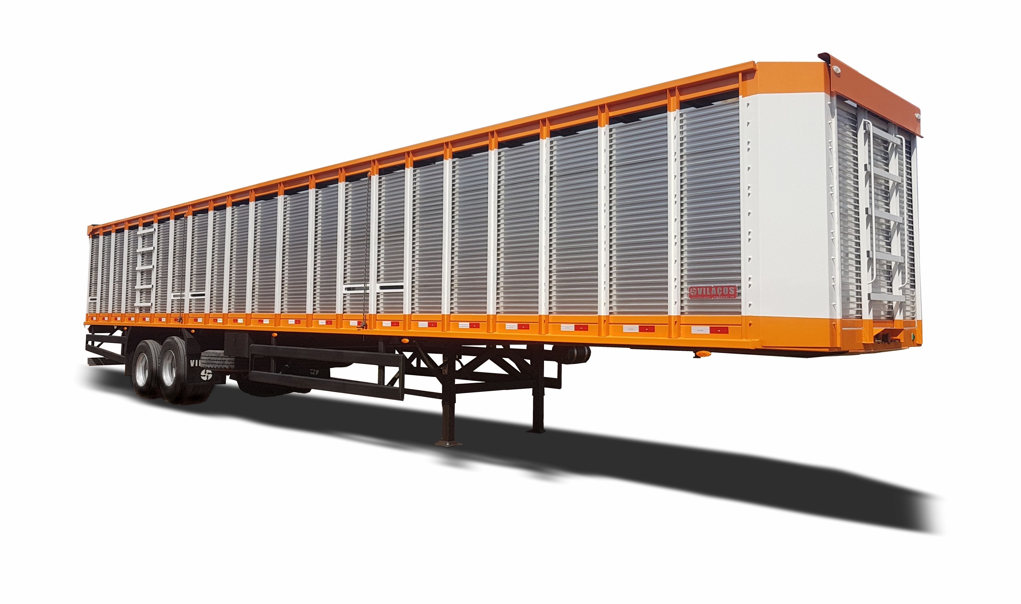 Semi-Reboque com 02 ou 03 eixos de base reta com piso e comprimento de até 15.500mm, com altura livre interna de 1.800mm e assoalho liso ou perfilado (à escolha do cliente), possui 03 andaimes superiores e divisões internas lacradas até 1,20 metros. Apresenta pé de apoio mecânico telescópico de duas velocidades, suporte de estepe tipo cesto para 02 pneus e pino-rei de 2” conforme norma ABNT.